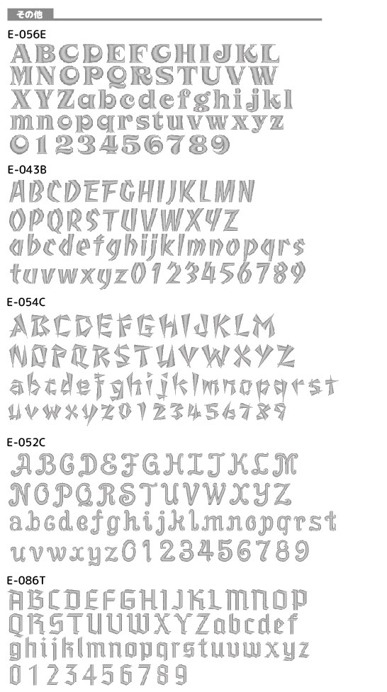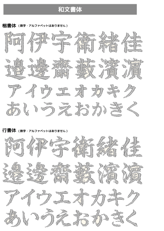 ■ネーム刺繍用書体サンプル