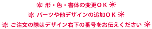 無料デザインの原画をそのまま使用する場合はもちろん、パーツやフォントの追加や変更も無料対応できますが、大量のパーツを追加する場合、テンプレートを大きく改変する場合、また多くの文字を当方で入力しなけらばならない場合はデザイン料金が発生することがあります。